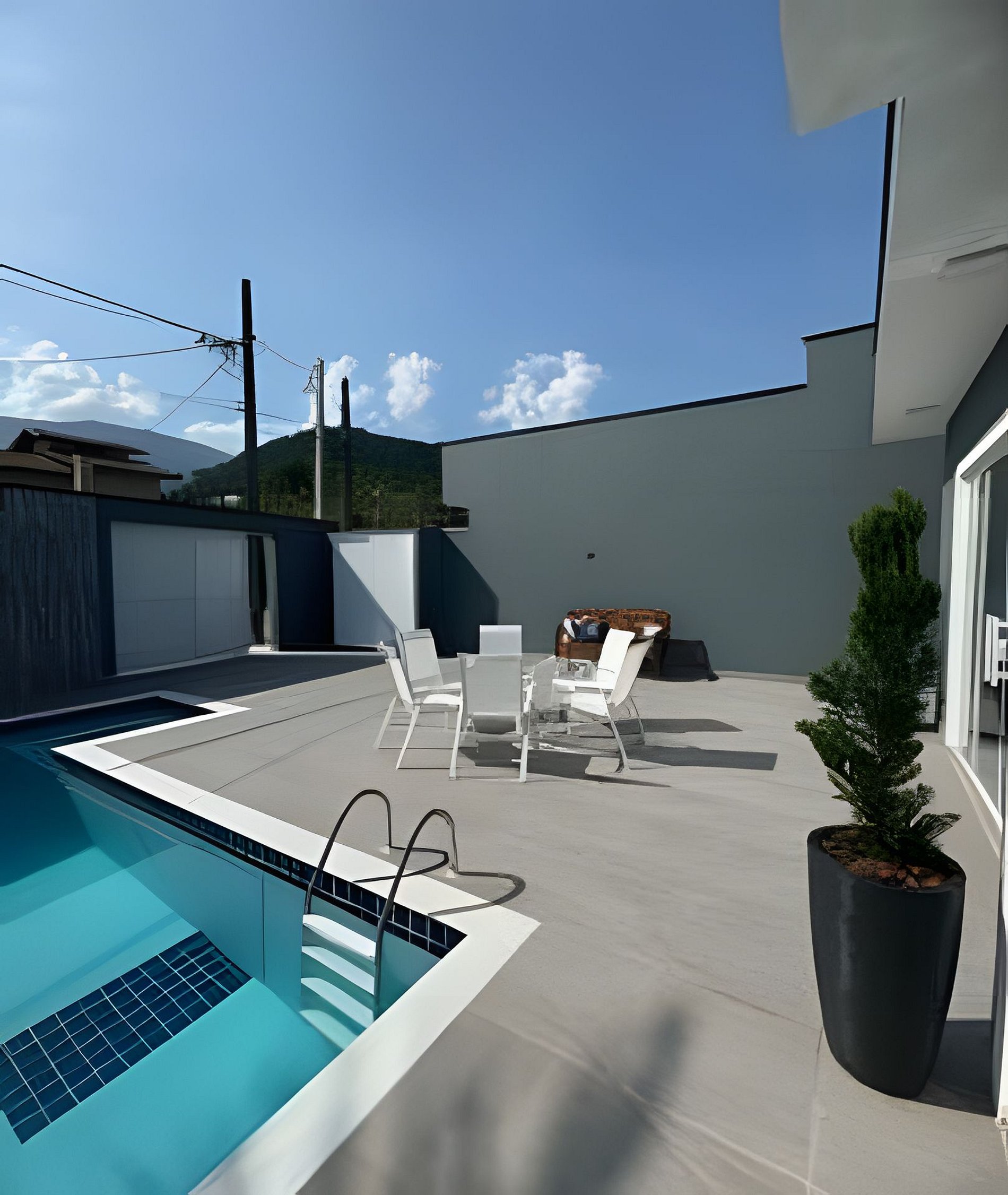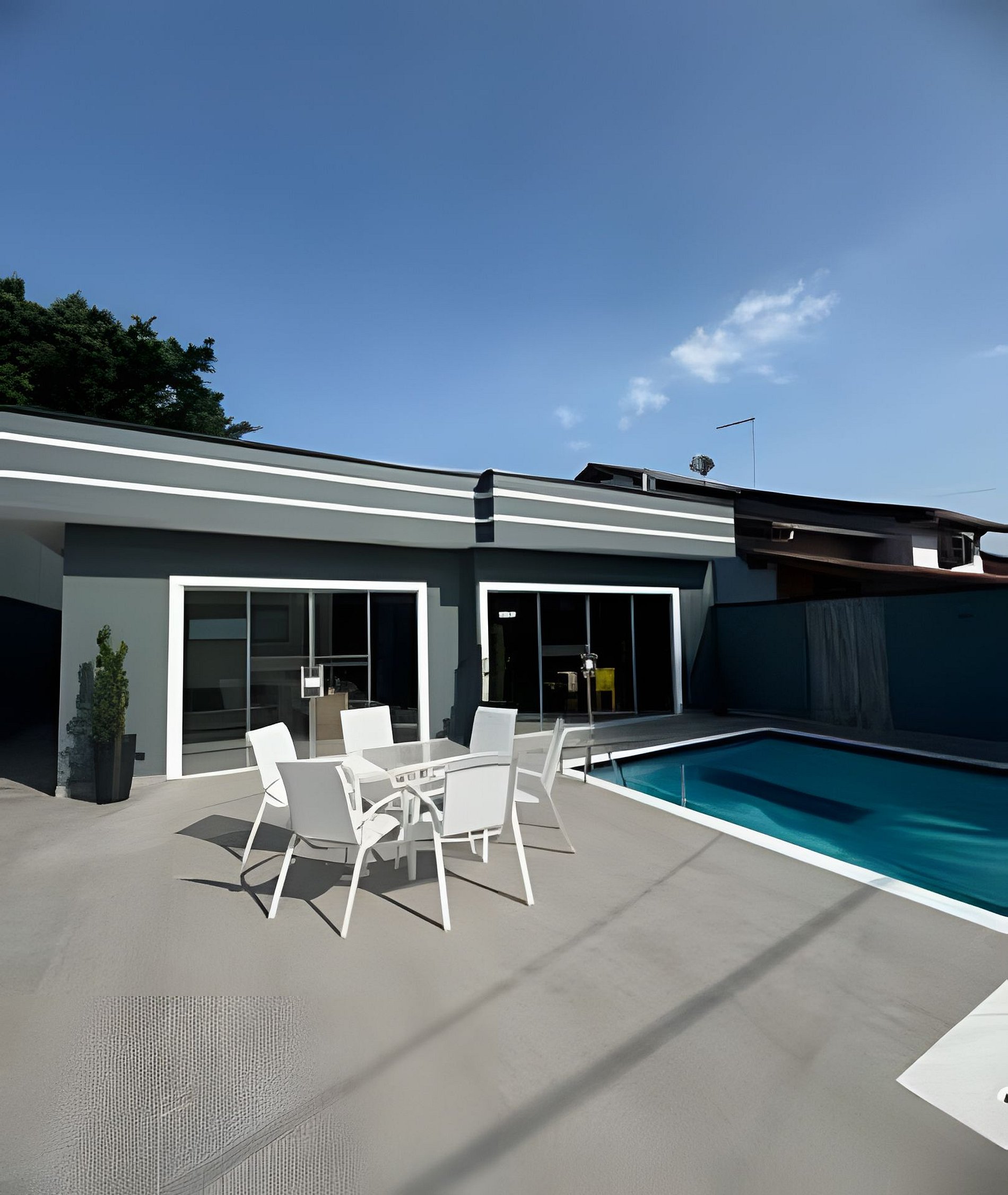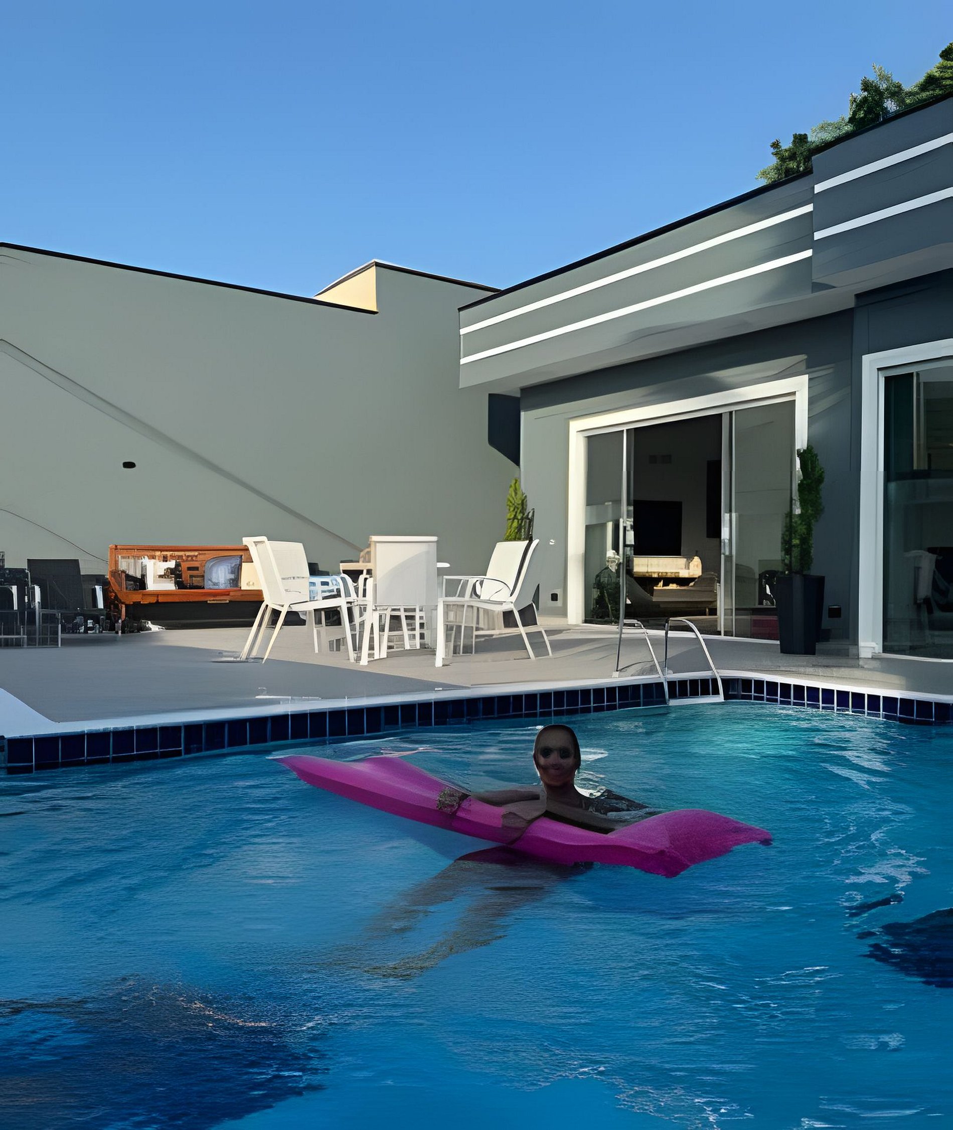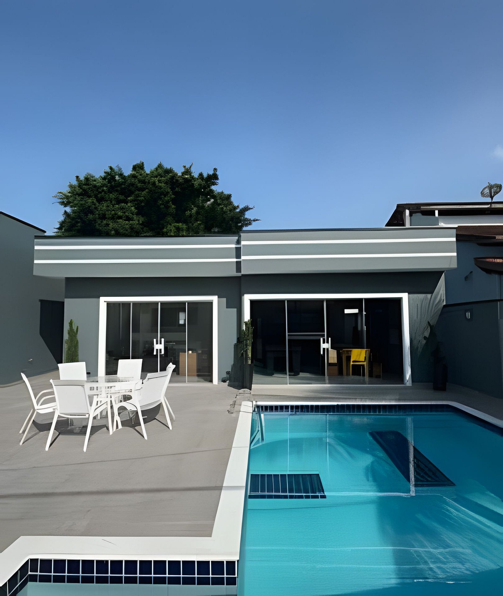 A casa possui ótima iluminação para aproveitar a piscina também a noite.
