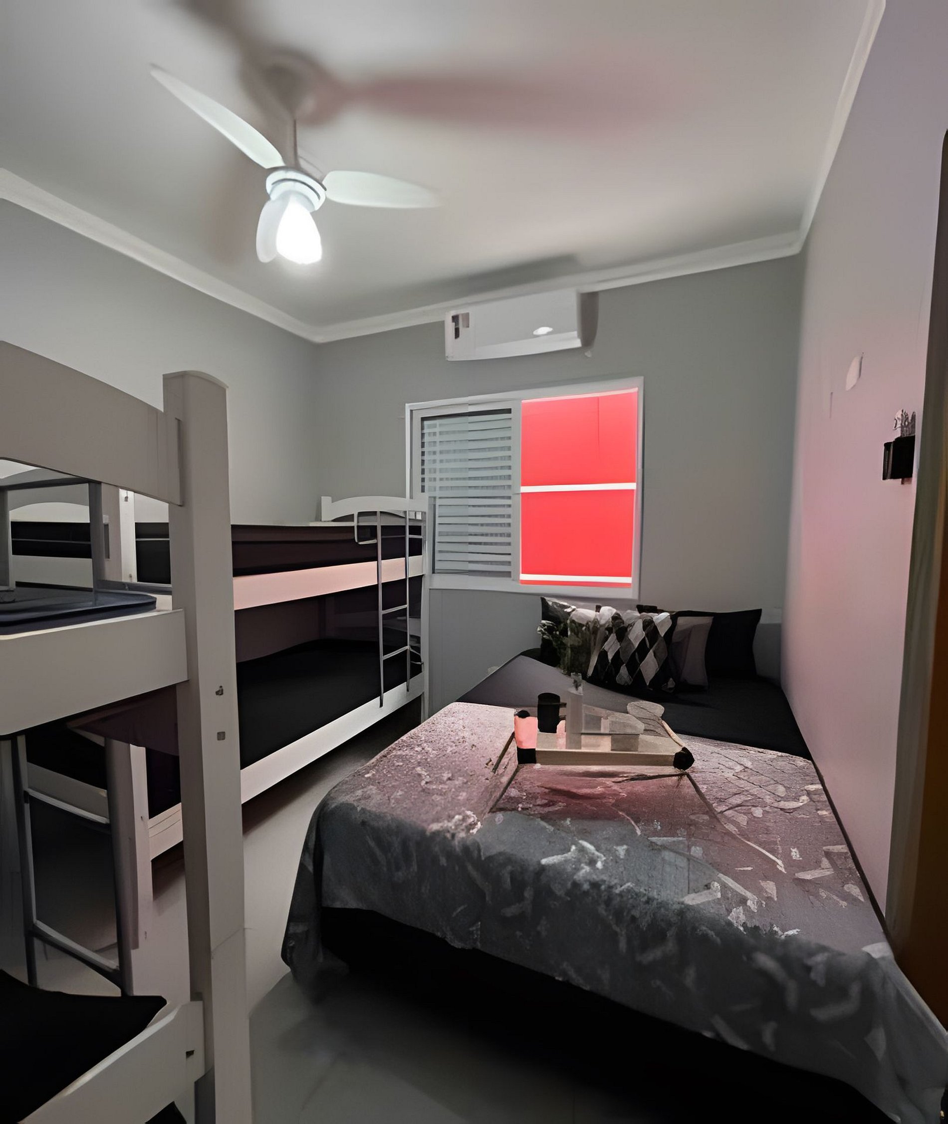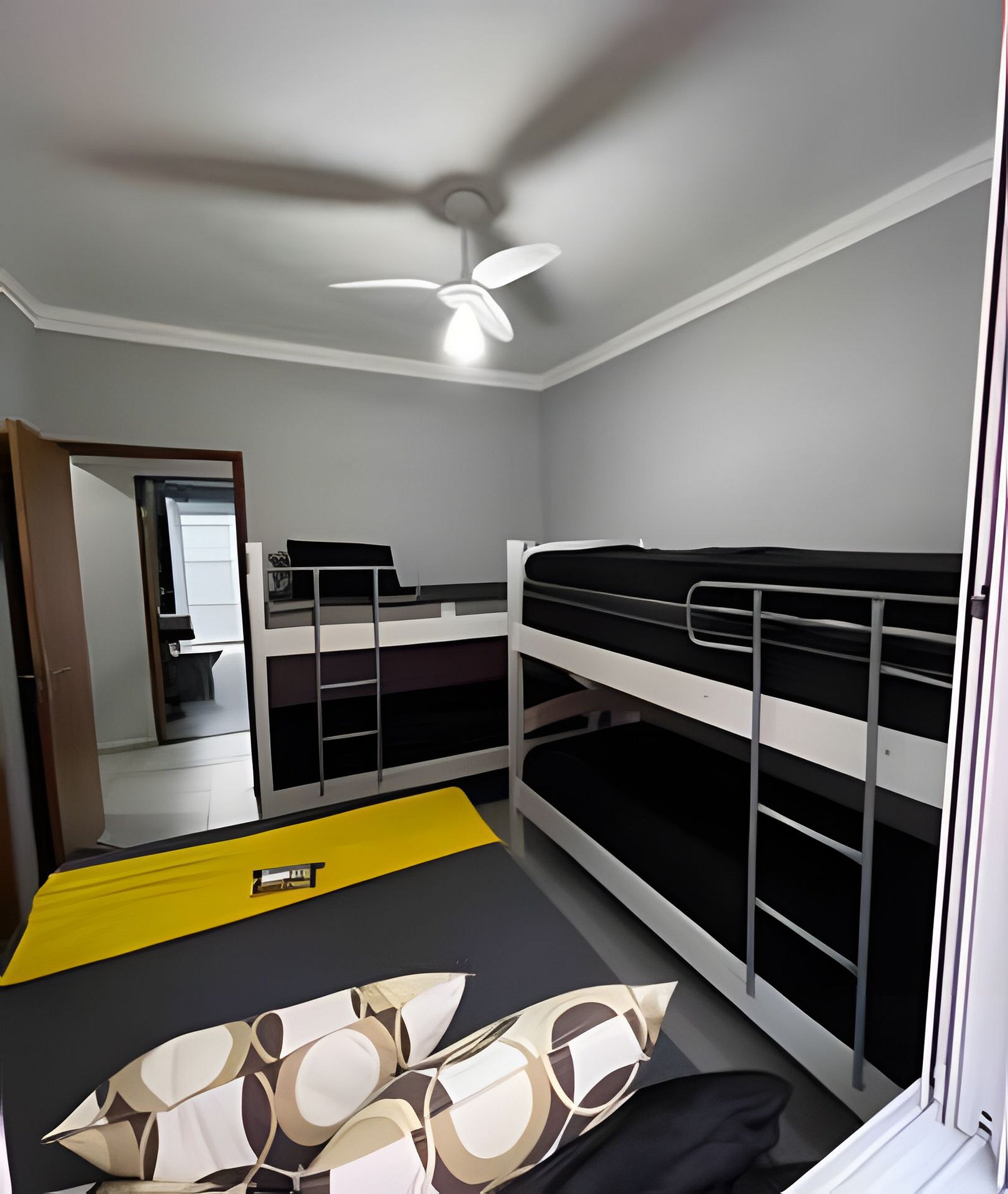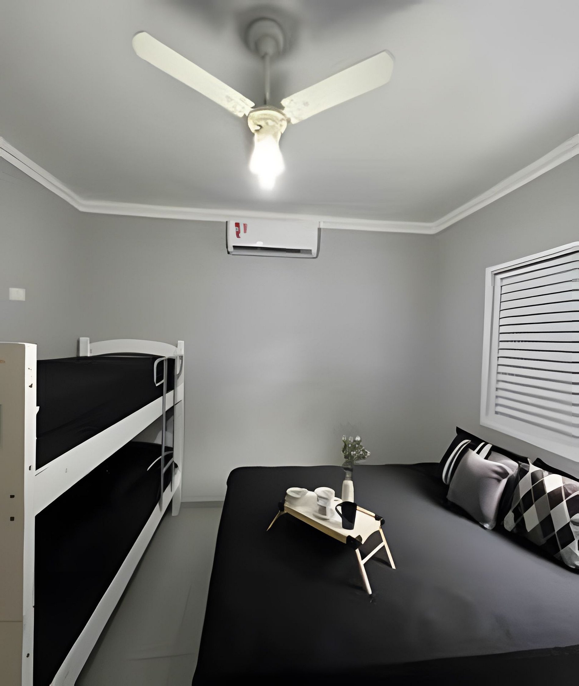 Nossas 3 suítes são amplas e arejadas, possuem ar condicionado e ventiladores de teto, contam com camas super confortáveis no padrão Queen e também beliches.