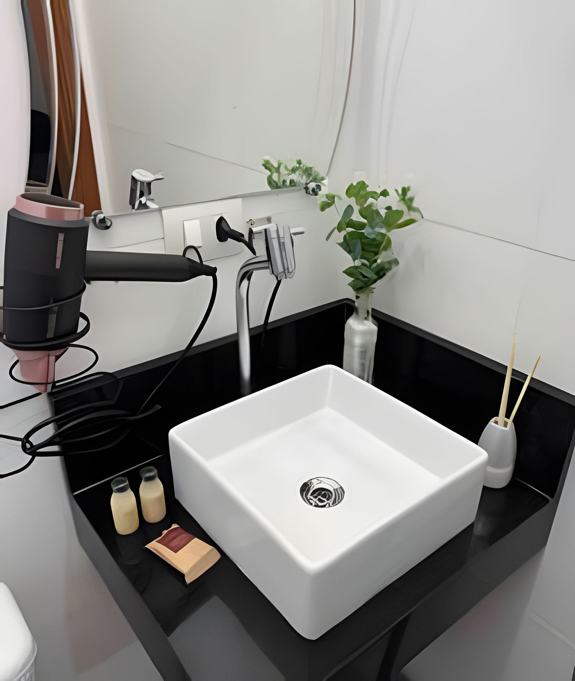 Todos os banheiros contém um kit exclusivo Natura Ekos com mini sabonete, mini shampoo e condicionador e secador de cabelo muito potente.